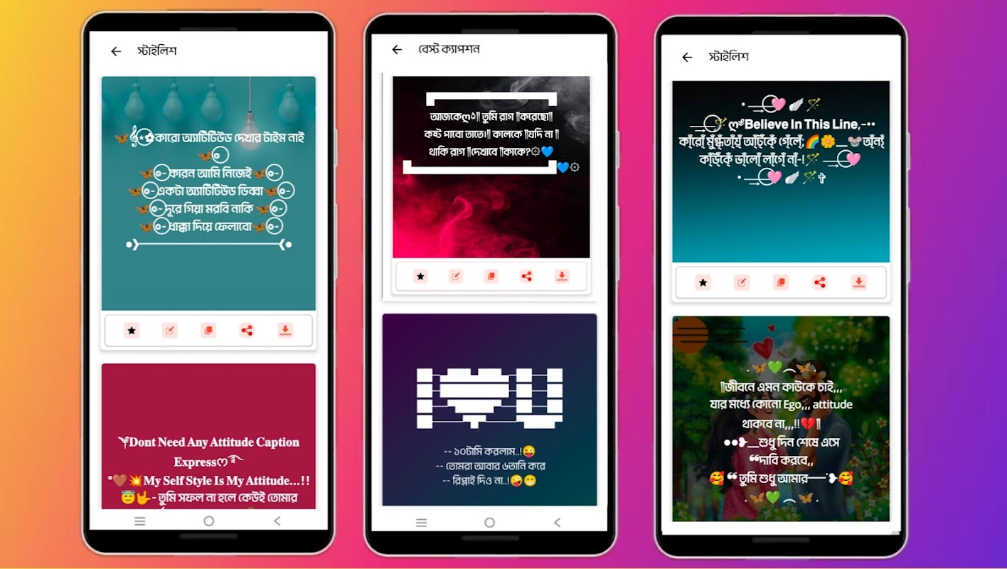 Dapatkan kapsyen bergaya dan imej status dalam apl Status Kapsyen Bangla.