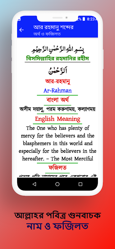 ১. পবিত্র আল কোরআনের অতি প্রয়োজনীয় ৩৩ টি সূরা বাংলা উচ্চারণ ও অর্থ সহ সুন্দর কন্ঠে অডিও শুনতে পারবেন পারবেন (যেমন: সুরা ইয়াসীন, সুরা আর রহমান, সুরা ওয়াক্বেয়া, সুরা মুলক, সুরা মুজাম্মিল সহ সুরা)