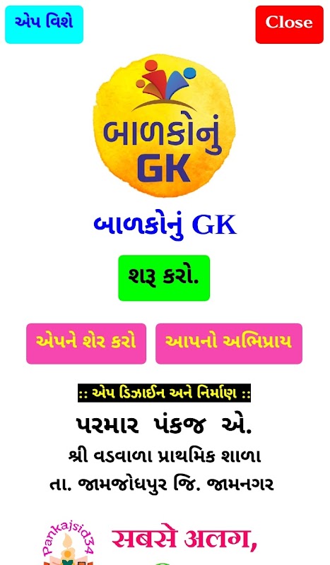 Pankajsid34 menyajikan Aplikasi Kuiz Pengetahuan Am Gujarati Dalam Talian untuk Standard 3 hingga 6. Ciri-ciri Bintang aplikasi diberikan di bawah.