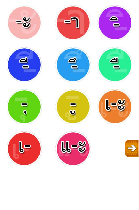 เป็นการฝึกออกเสียงไปในตัวอีกด้วย ในแอพพลิเคชั่นจะมีสองหมวดคือ มหวดพยัญชนะ และหมวดสระ