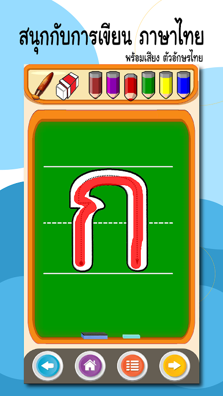Aplikasi amalan penulisan Thai untuk kanak-kanak kecil yang membantu menulis kedua-dua huruf dan nombor dengan betul