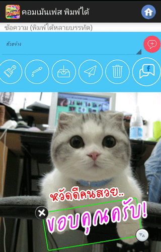 - เลือกรูปที่ต้องการ > พิมพ์ข้อความโดนๆ กวนๆ มันส์ๆ ฮาๆ แล้วกดส่งเป็นสติกเกอร์ไลน์ ให้เพื่อนได้เลยจ้า....