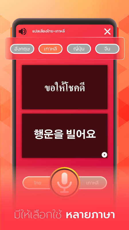 - bercakap dalam bahasa Korea dan diterjemahkan ke dalam perkataan Inggeris Thailand.