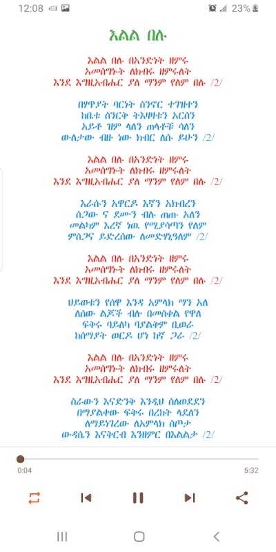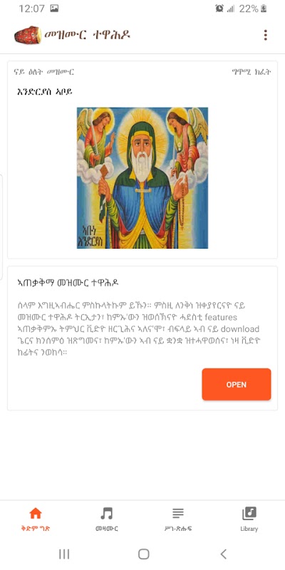 Aplikasi ini mengandungi lagu-lagu Injil (መዝሙር) dan puisi (ሥነ-ጽሑፍ) untuk The Orthodox Tewahdo.
