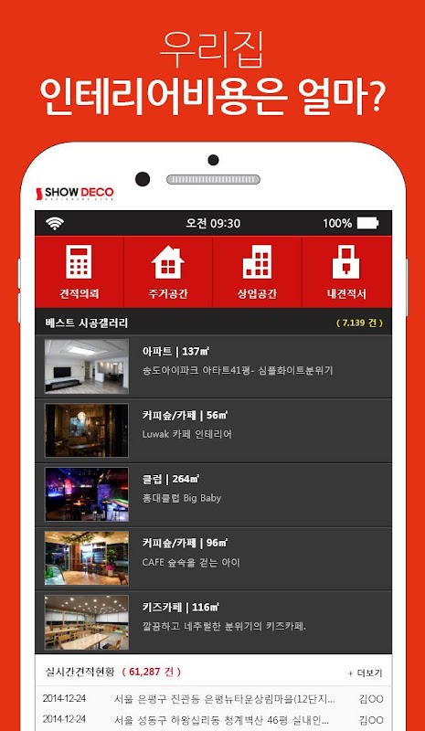시공항목별 인테리어 시공 예상비용 산출/비교견적,주택 및 상업공간 인테리어 전문 업체들의 시공사진,업체 정보 제공, 지역별 인테리어 업체 검색