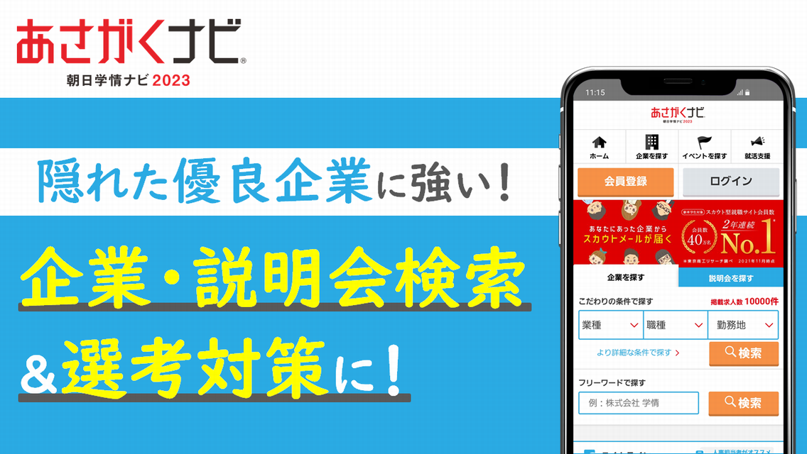 新卒向け就活・就職情報サイト「あさがくナビ2023」の公式アプリです。