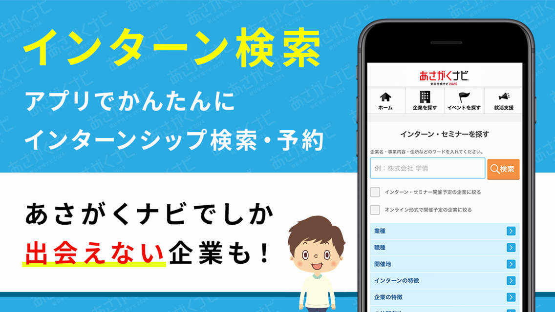 【あさがくナビ2025】新卒向けインターン・就活準備アプリ