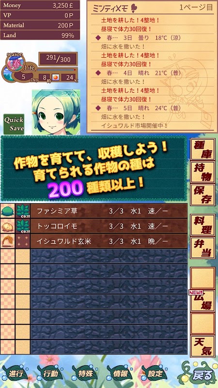 Lebih daripada 200 jenis tanaman dapat ditanam! Anda juga boleh memasak menggunakan tanaman yang ditanam dan bahan-bahan yang dikumpulkan dari sumber lain!