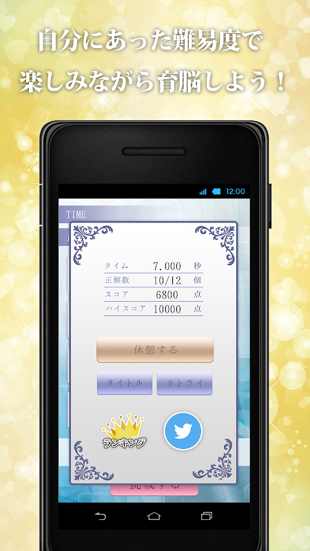 タイムと正解数からスコアが表示されるので毎日の成長を実感できます。