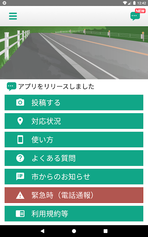 一関市が管理する道路の損傷等に関して、スマートフォンのカメラ及びGPS機能を利用して投稿できるアプリケーションをリリースしました。