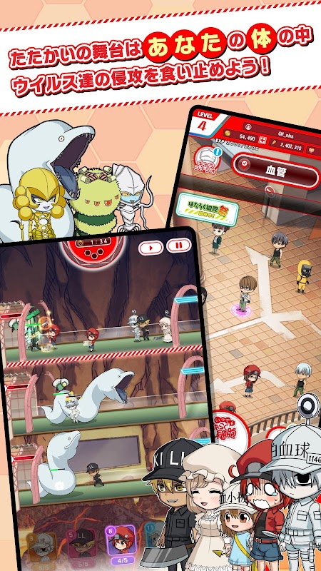 これはあなたの体内(からだ)の物語。細胞たちは今日も元気に、休むことなく働いている。 擬人化モノの新定番、大人気コミック「はたらく細胞」が待望のアプリゲーム化!