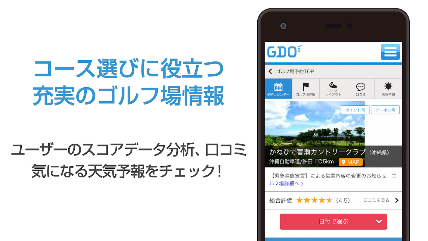 沖縄県のゴルフ場を予約できる沖縄県民専用のGDO公式アプリです。 沖縄県民専用プランを随時掲載し、県民向けにアプリ専用プランを配信します。