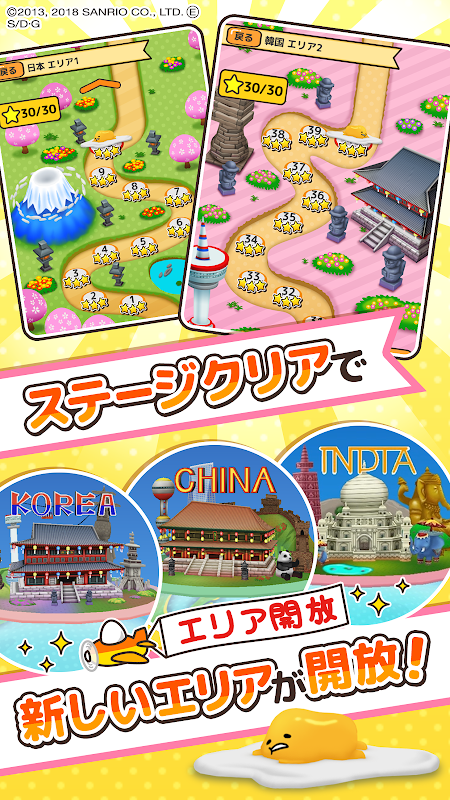サンリオ1の脱力系?あのぐでたまが3Dに! ぐるぐる回転するステージを、簡単ワンタップアクションで攻略♪ レシピを求めて世界中を飛び回る!?新感覚【ぐでぐであみだアクション】ぐでせか登場