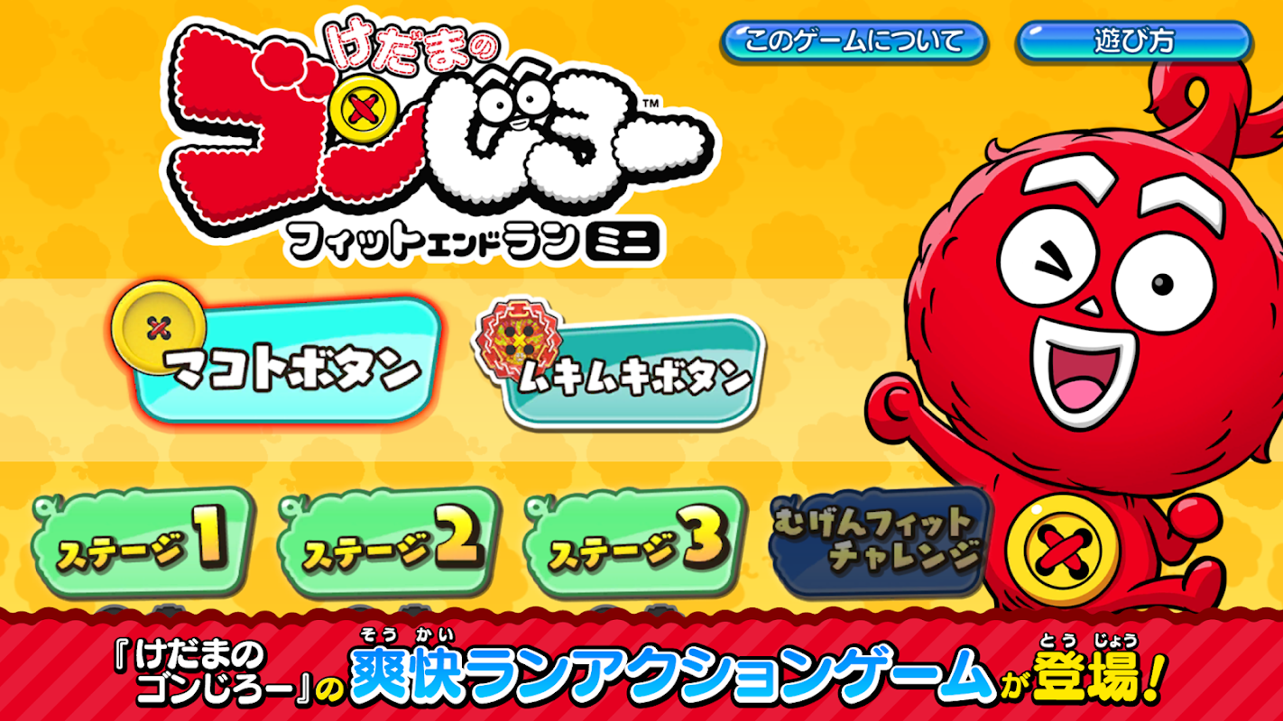 (2)無限フィットチャレンジ:マコトボタンとムキムキボタンで全てのステージをクリアすると、無限フィットチャレンジがプレイできる!ゴンじろーの走るスピードがどんどん上がっていく中、君はどこまでスコアを伸ばせるのか!?