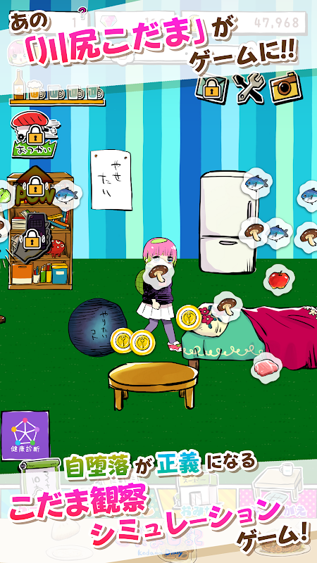 Manga Twitter popular "Kawajiri Kodama" kini boleh didapati sebagai permainan simulasi longgar! "Kodama Diary" ialah permainan simulasi untuk orang dewasa yang menegaskan keburukan diri sambil merenung Kodama Kawajiri, seekor singa berbahaya yang hidup dengan syaratnya sendiri, menelan alkohol, minyak, makanan masin dan manis.