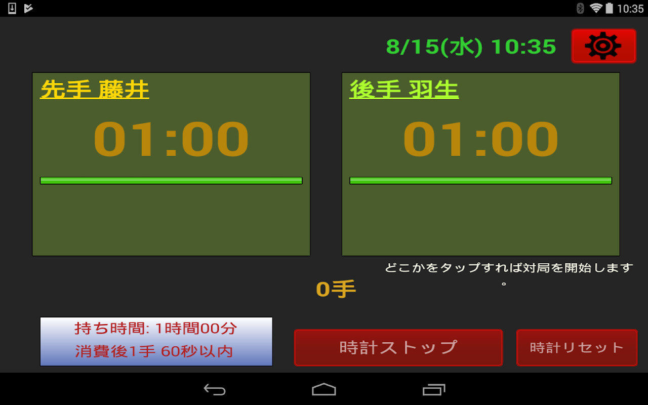 2.持ち時間などを設定できたら、時計画面に戻って画面上のどこかをタップすれば時計が動きだします。