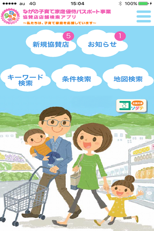 ながの子育て家庭優待パスポート店舗検索アプリ「ながの子育て」