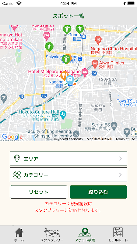■観光スポット検索長野市内のお店や観光スポットを検索できます。観光施設ごとのページでは営業時間など詳細のほか、お店までのマップ表示ができます。