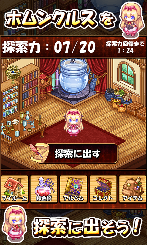 メリルを探索に出して、錬金素材を収集⇒集めた素材を錬金してすべてのアイテムのコレクトを目指します。