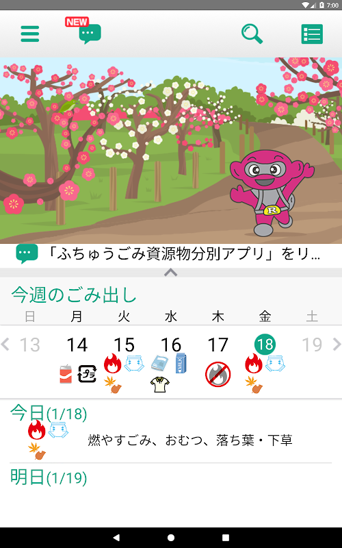 東京都府中のごみ・資源物の収集日やごみの出し方、出す時の注意点、ごみ分別辞典、よくある質問など、ごみに関する様々な情報を身近なスマートフォンを利用して簡単に確認できるアプリケーションをリリースしました。