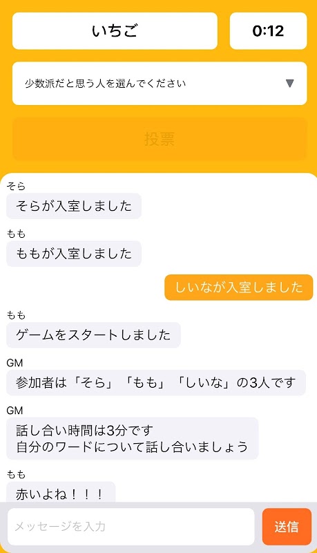 与えられた単語について話し合いながら誰が少数派なのかを探り合います
