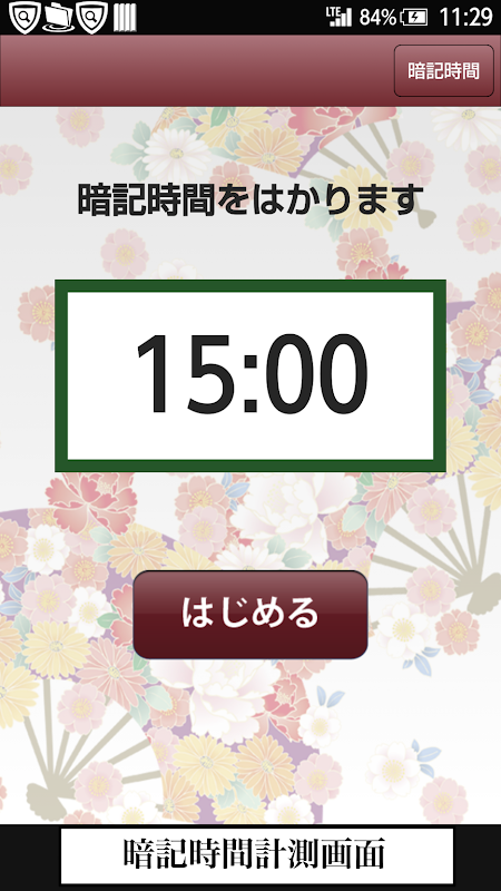 「はかる」機能を使うと、暗記時間の15分を自動計測します。2分前の宣言なども自動で行います。