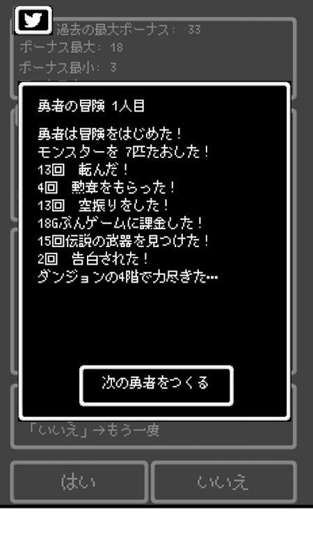 「いいえ」を押すたびに新しい勇者が生まれ、そして消えていく。