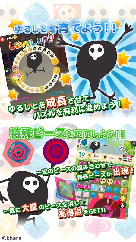 ・ぷるぷるのピースを3つ並べて消すだけの簡単操作!