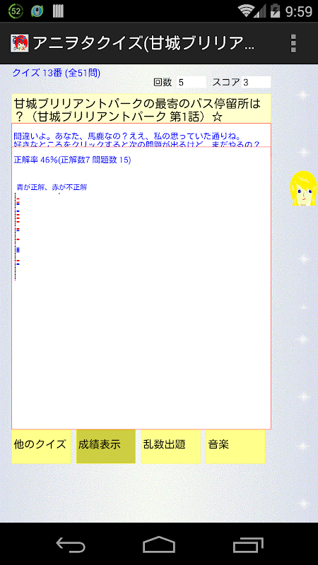 第一弾リリースは第5話分までのクイズ51問でリリースしました。