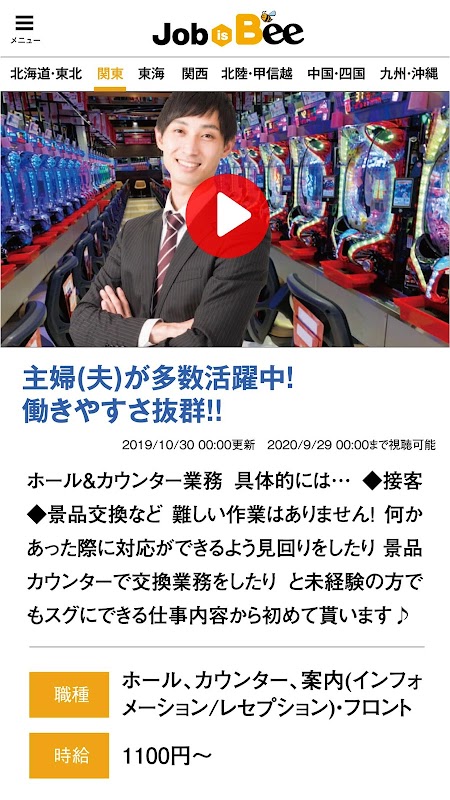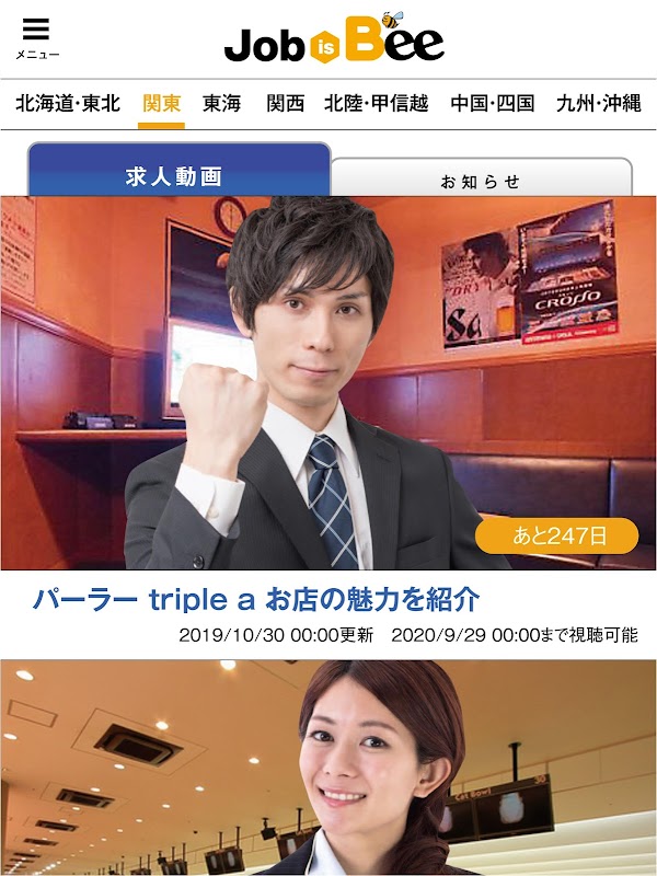 株式会社 triple a 出版が提供するアプリ「Job is Bee」は、アミューズメント業界の求人情報記事やお店の紹介を動画で見られるアプリになっています。
