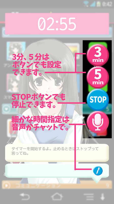かわいいキャラクターと音声でタイマー設定/お知らせしてくれます。