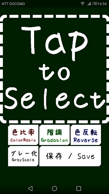 スマホ内の画像の色を自由に変更するアプリです。 三原色の割合を変更、グラデーションの追加、色の反転やグレースケール変更ができます。