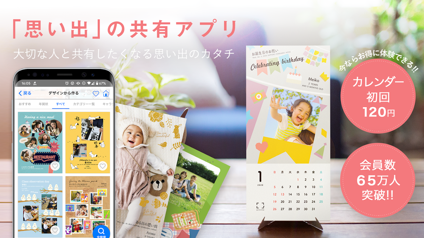 カレンダー形式のイベント管理機能で、季節・家族のイベントや作品づくりの予定がかんたんに管理できます。登録したイベント当日にはアプリがお知らせしてくれるので、大切な思い出を忘れず作品に残すことができます。カレンダー上にたまっていく「作品」を見返して、昔の思い出を楽しんでいただけます。