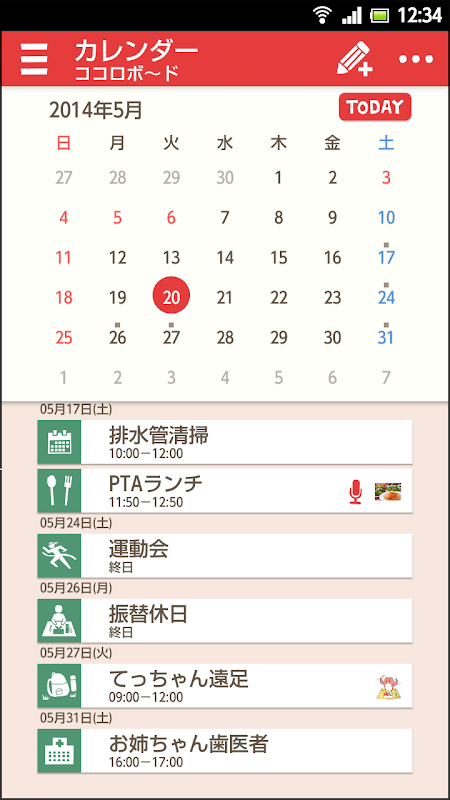 家族の予定を家族カレンダーで共有できます。予定を登録すると家族全員に通知することもでき、スケジュールの共有が図れます。