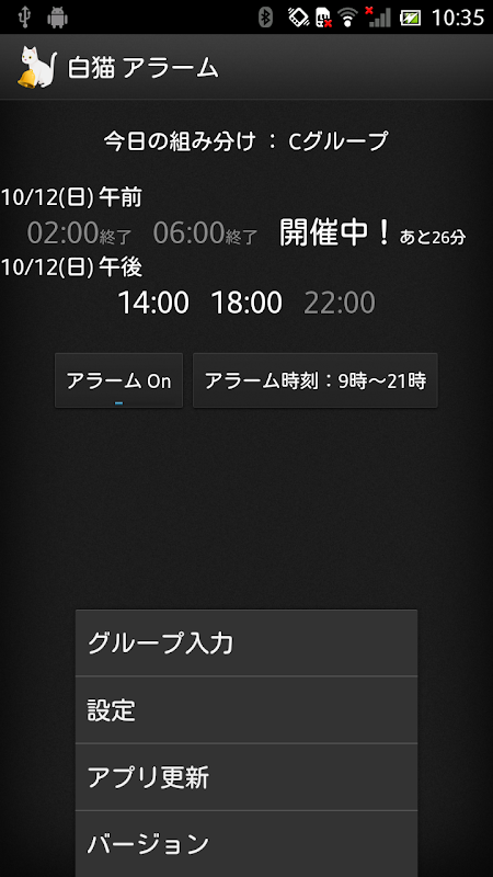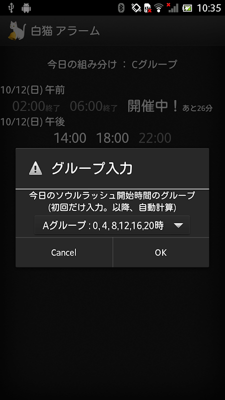 はじめに今日のソウルラッシュが始まる時間の組み分けグループを一度だけ入力すれば、画面にあなたのゲリラ時間割が表示され、クエストが始まる時間をステータスバー通知でお知らせしてくれます。