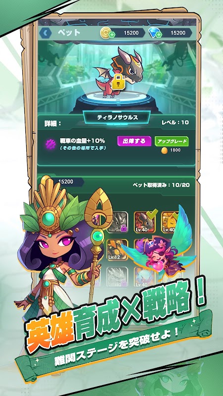 Lebih 100 wira dan haiwan peliharaan yang unik! Ia juga mungkin untuk menggunakan pelbagai pekerjaan dan kemahiran dan melepaskan kuasa tersembunyi melalui latihan. Cipta pasukan terkuat anda sendiri dan sasarkan kemenangan dengan strategi anda sendiri!