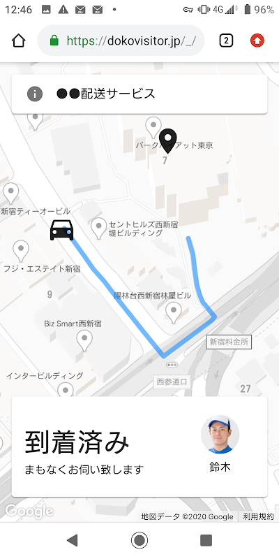 お客様宅への訪問前に、スタッフの現在地と到着予定時刻をお知らせ。