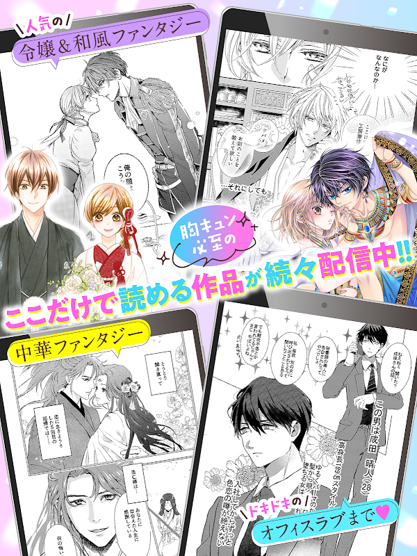 Sambil memfokuskan pada fantasi percintaan dan percintaan moden, kami juga membangunkan pelbagai genre seperti penjelmaan semula di dunia lain dan komedi romantis!