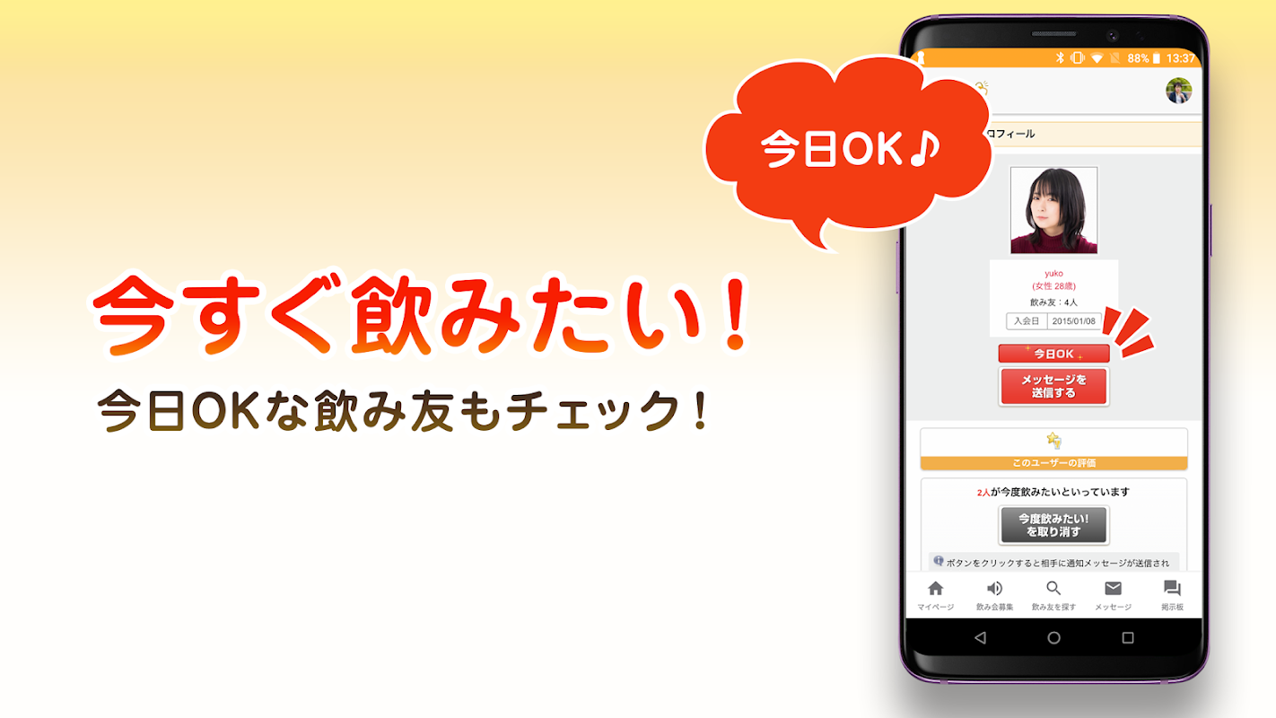 Nomitomo menghubungkan orang yang suka minum parti, dari minum teman untuk mencari pencinta