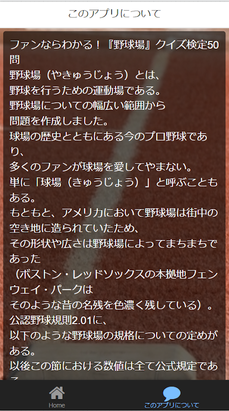 ファンならわかる!『野球場』クイズ検定50問 2.0.1
