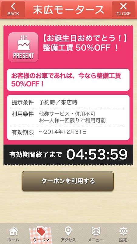 ●誕生日の月に届くお得なクーポンやアプリユーザー限定配信のクーポンをお届けします。