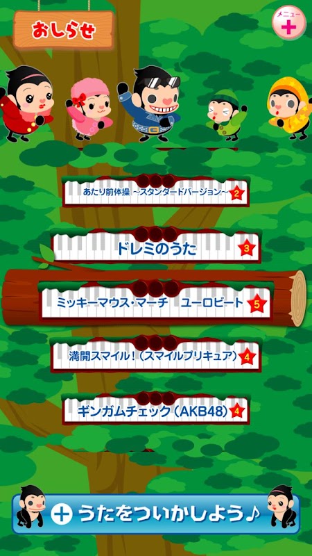 子供に楽器を演奏する楽しさを知ってもらいたいと考え、子供でも簡単に演奏できる音楽ゲームを作りました。 おやこで一緒に音楽を楽しんでください!!