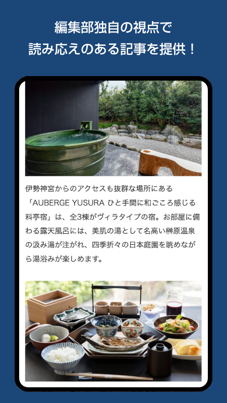 編集部が厳選したラグジュアリーな旅情報をアプリでサクサク閲覧できます。