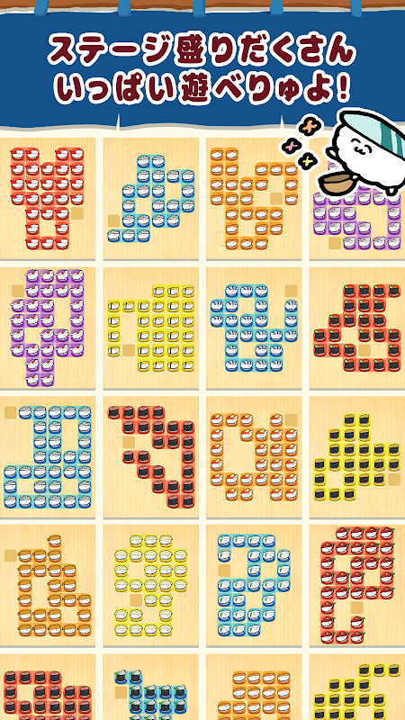 SNSで話題「おしゅしだよ」の一筆書きパズルが登場です!大人気おしゅしキャラと一緒に脳トレしましょう!通勤時間やヒマな時間にピッタリ!全て無料です!