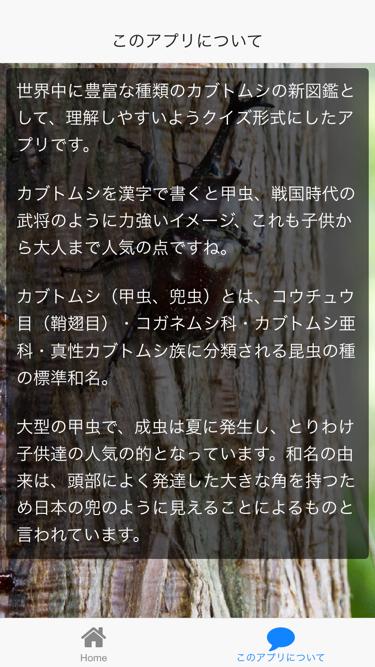 カブトムシの新図鑑としてまとめたアプリです。世界のクワガタムシ新図鑑と共にリリースしましたので共にご活用ください。