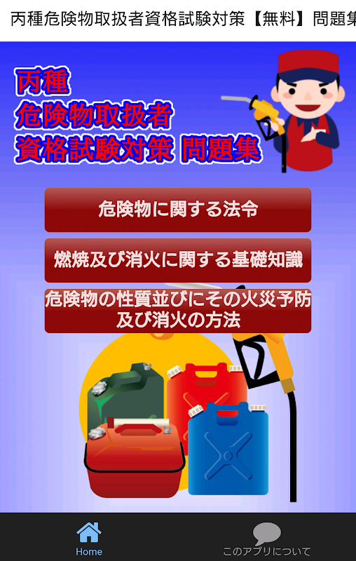 丙種危険物取扱者資格試験に備えて学習するための無料の問題集アプリです。