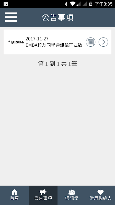 APKPure menggunakan pengesahan tandatangan untuk memastikan muat turun APK 中央大學EMBA校友同學通訊錄 tanpa virus untuk anda.