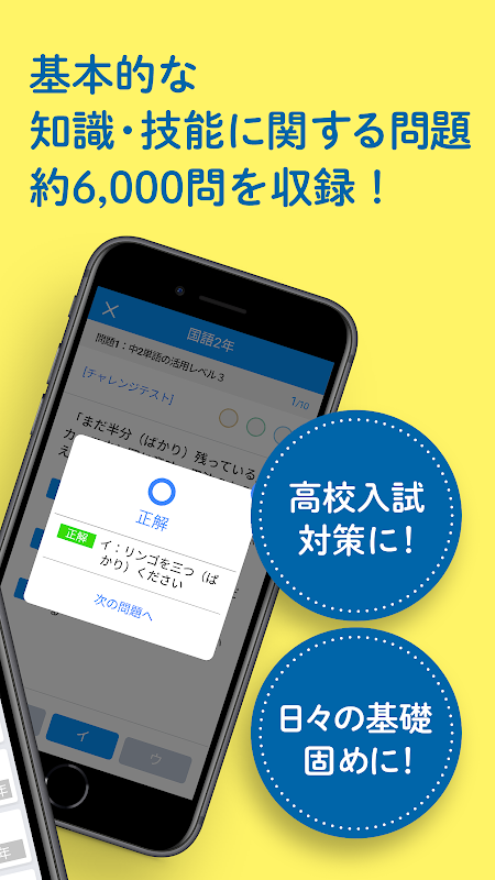 Anda boleh dengan mudah mempelajari soalan tentang pengetahuan dan kemahiran asas dalam format 3 pilihan untuk 9 mata pelajaran yang dipelajari di sekolah menengah rendah (Bahasa Jepun, matematik, sains, kajian sosial (geografi, sejarah, sivik), Bahasa Inggeris, pendidikan kesihatan dan jasmani, teknologi/keluarga, seni, muzik). Dengan menggunakannya pada masa lapang anda atau untuk tempoh masa yang singkat setiap hari, anda boleh memperoleh pengetahuan asas tentang semua mata pelajaran.