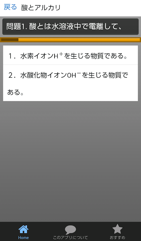 中学3年理科の化学分野-化学変化とイオン、酸・アルカリと塩、についての学習アプリです。 項目別にクイズ形式になっていて、楽しく取り組みやすくなっています。