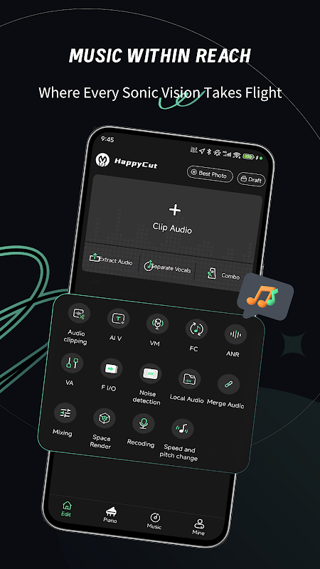 1.Keratan muzik profesional: Menyokong keratan muzik tepat hingga 0.1 saat, fungsi lanjutan seperti penggabungan, pencampuran, pemisahan, perubahan suara, pudar masuk/keluar, dll., membolehkan anda mencipta nada dering telefon dan muzik dengan mudah!